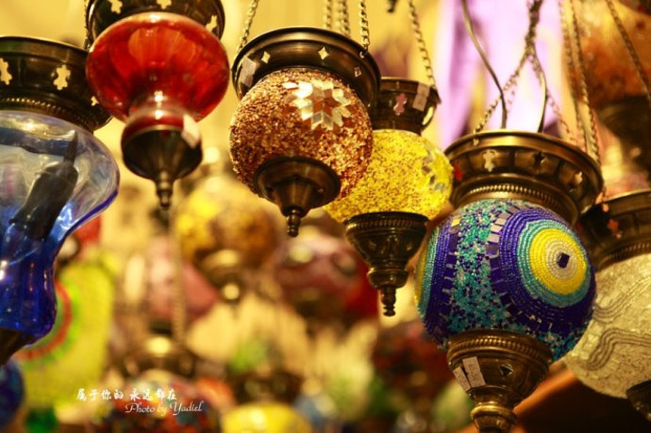 偌大的放射状的集市,稍不注意就感觉走进了迷宫。整个大巴扎以首饰、陶瓷、香料、地毯、灯饰居多,这种有点类似于水晶片制作而成的特色灯具,我特别想买一个,但考虑到运输问题最终还是放弃了。