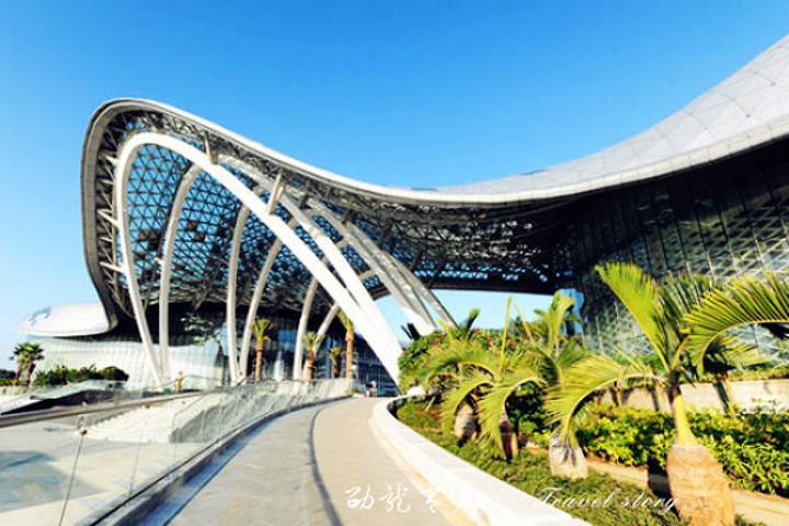 海棠湾免税购物中心拥有7万平方米的商业中心,包含集免税购物、有税购物、餐饮娱乐、文化展示的大型mall。来到三亚海棠湾免税购物中心门口,就能看见如一朵绽放的海棠花型的独特建筑。
