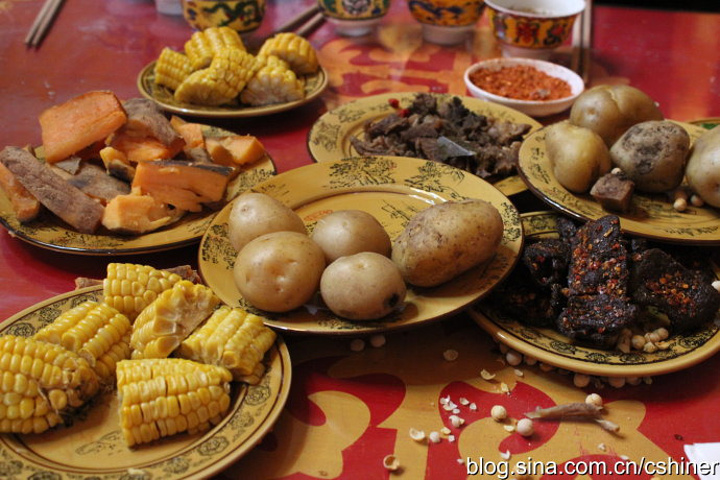 牦牛蛋、苞谷、牦牛肉……统统都上来