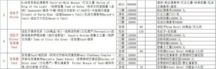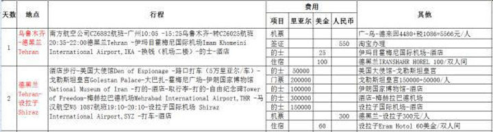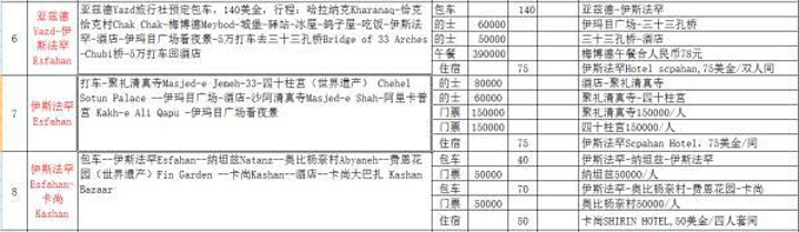 费用:机票5566+300人民币、签证550人民币,加上在伊朗当地的交通、食宿和门票,费用大约500美金/人。十一天旅游的费用:人均9000多元人民币。