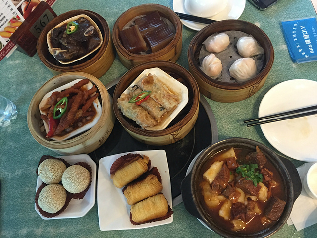 我们是第六天下午2:56的火车,所以还有一上午的时间,我们住的宾馆后墙就是越秀公园的大门,步行一分钟,早早起床去公园遛弯,看到五羊雕像,呼吸着新鲜的空气向北门进发,因为那里有越秀区排名前十的早茶店,点心味道是不错呀,不知道是不是我运气太好,吃完之后发现其中一份点心里有一只牺牲掉的小强,哎呀呀.....当时那个心情啊.....
