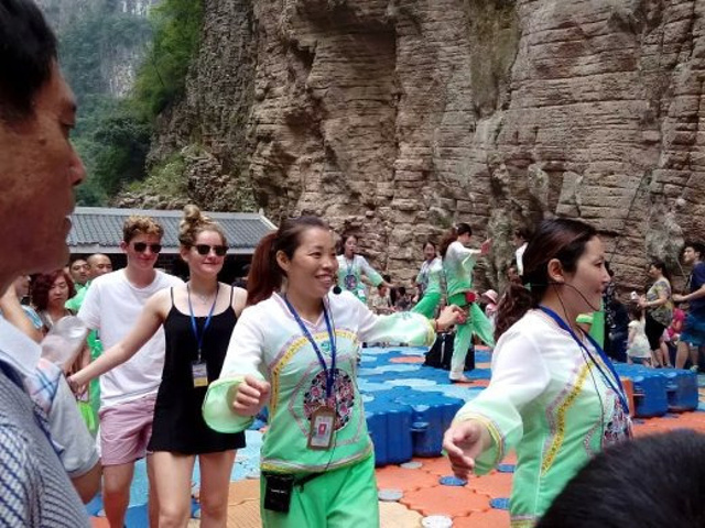 土家族导游表演,回程的船上导游会向你推销当地的特产