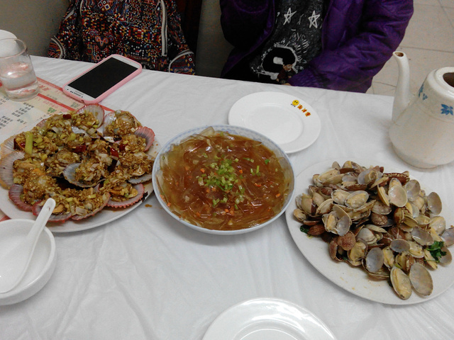 随便团购了一家馆子 不到一百块,太好吃!螃蟹的味道很足,扇贝和蛤蜊也很下饭 两个女生硬是把团购的三人餐吃的一点不剩 米饭还多要了一碗也吃光了 老板最后说多出来的那碗米饭算是送我们的不要钱了。。。