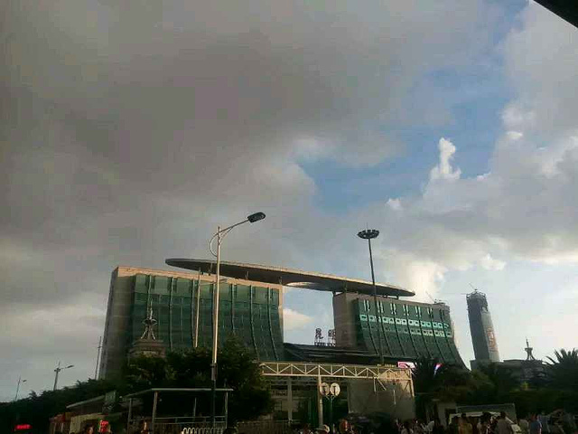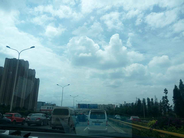 在景区吃完饭就回昆明会展中心购物点了,没有强制消费只听听他们讲丝绸和玉的常识也挺不错。如果只是想去看看,跟团是经济方便很多,80元包门票加电瓶车,中午吃的团队餐也还不错。各有利弊吧。回去的路上,车窗外的天空也很让人心动。从昆明会展中心出来大概五点左右的样子,车票是晚上十一点的,外面的阳光正好,走走吧。于是百度地图,一路走到车站。心情还不错,吃完饭还有好几个小时才发车,就在车站附近闲逛。昆明的水果种类真多呀,路边水果摊上的水果好多都木有见过,涨姿势了。对了,昆明火车站附近有一个玉石商城,感觉成色跟昆明会展中心里的差不多的,但比那里要便宜好多倍,别问我怎么知道的,等车的时间实在无聊啊,在商城里随便看看聊聊天砍砍价什么的也挺好的😄。