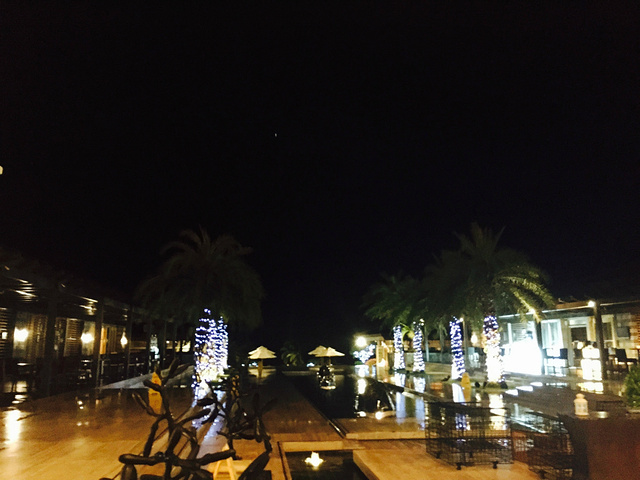 吃到一半遇上暴雨,从大堂往沙滩的方向望,闪电照耀整个天空,非常状观。