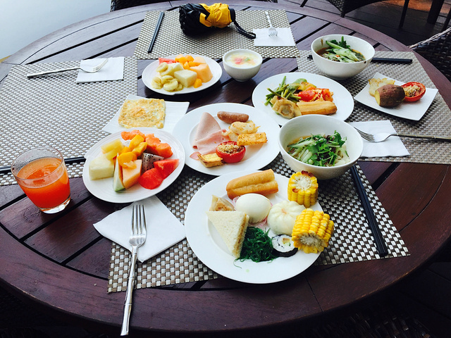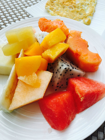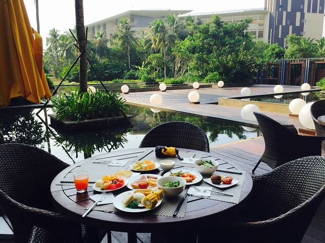 逸林的早餐在一楼,品种很丰富,但是没有海鲜,选在室外吃,环境很好。