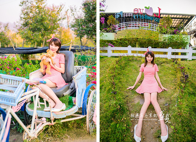 草莓园怎么没看到一颗草莓?我能说是因为忘了拍吗?哈哈!粉红小屋、黄色小屋和草莓园都是距离很近的景点,几分钟的车程,主题都十分少女,所以我们把它们安排在一起,记得穿得粉嫩嫩地来这里哦