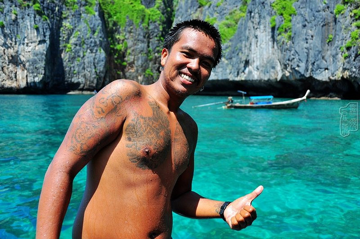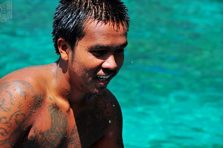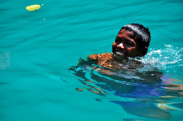 于是也穿好救生衣,我就下海了。可能我实在是太胖了,太重了,地球的引力也太强了,我就觉得我要下沉。自身生长的四个救生圈,不光不管用,还成了负担。哈哈哈,没办法,只浮潜了几下,俺就自知之明的求救。