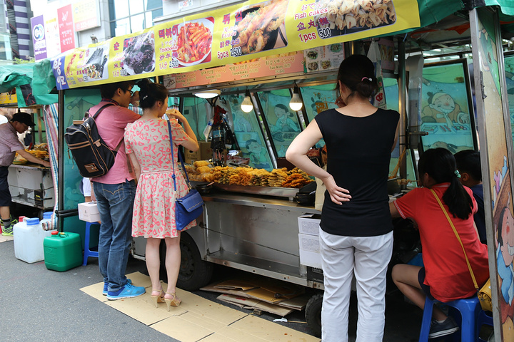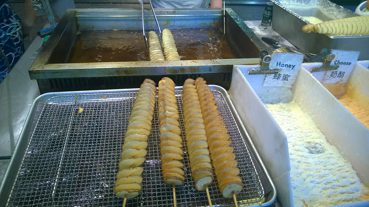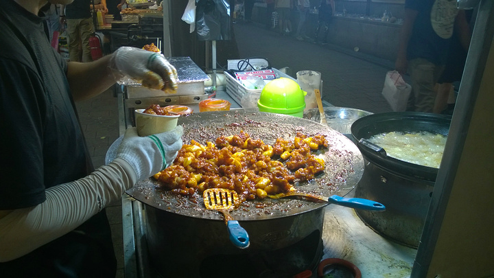 晚上又是靠这些就解决了……真的从旁边经过的时候,闻着香味就走不过去啊!而且和白天的似乎又不太一样,晚上的看上去好像更好吃!食物在灯光照射下真的美味的样子……我俩买了各种食物,在路边随便坐下就大开吃戒!