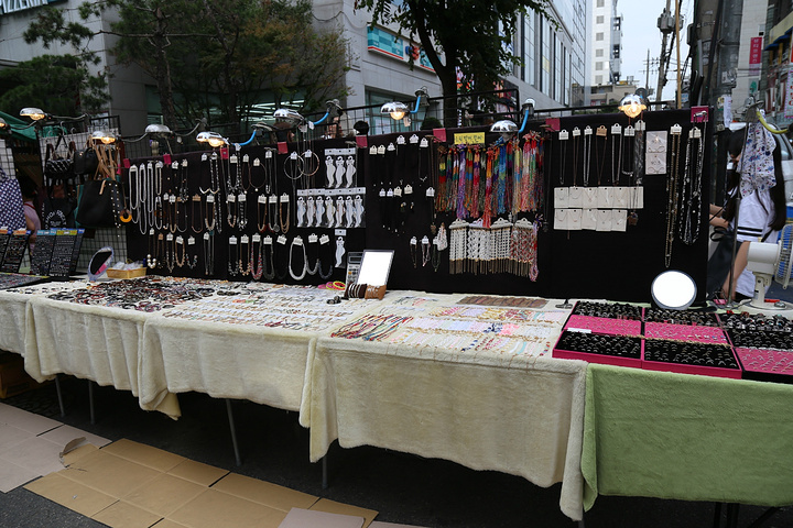 弘大嘛~就是以艺术+年轻为主题的!路边像这样卖着自己手工做的工艺品啦,小饰品的摊子真的是比比皆是!我们去了还看见有人在抱着吉他演唱呢!真的是很好的逛街氛围!