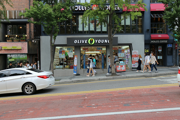 逛着逛着,一抬头看到这个店!这不是Olive Young嘛~本来打算第二天去明洞店的,没想到在这儿能见到!Olive Young在韩国特别有名啦!像便利店一般遍布在大街小巷!看到了哪有不进去之理!我们俩也进来看看,看韩国的小姑娘们都用些什么!