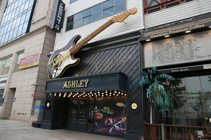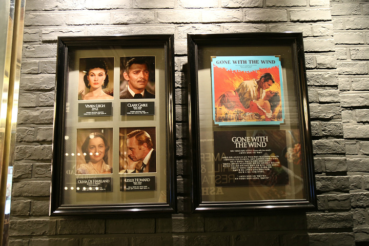 这个ASHLEY是一个艺术气息很浓重的自助餐啦~本来吧,弘大本身就是以艺术闻名的大学,周围也总是会有街头艺人唱歌啦,还有学生卖着自己做的手工艺品,和其他逛街的地方氛围完全不一样呢!这家店也是,还没进门就看见一把巨大的吉他,然后墙上还挂着《乱世佳人》的海报和剧照呢~费雯丽的美丽,在这个电影中成为永恒,想想就感慨……