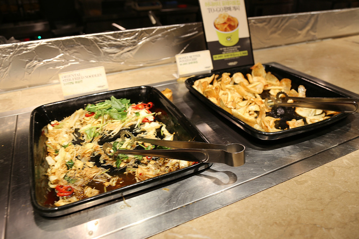 各种肉类,饮料类,都是随意盛取啦!话说我和闺蜜刚下飞机放下行李就来到弘大,都没怎么好好吃东西呢(好吧,路边的那些不能算正餐)!所以这顿饭真的是心满意足!现在一边整理着照片,一边都会微笑呢,真是想想都开心!