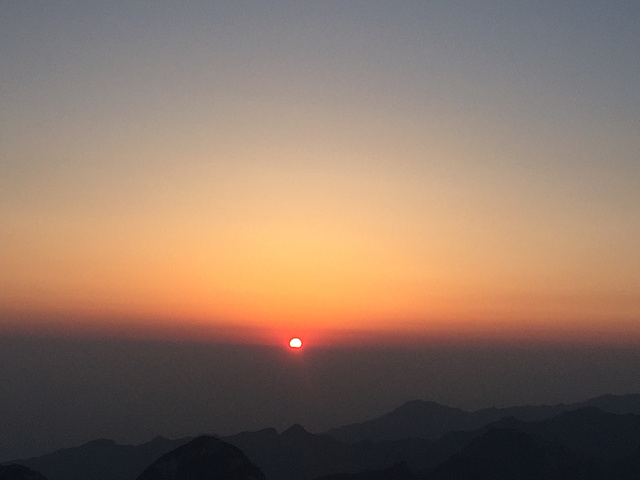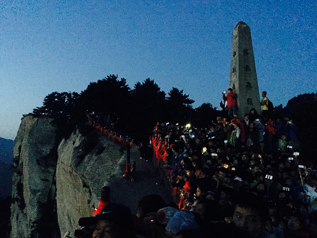 四点钟到达东峰顶,人已经很多了,连放脚的地方也没有,有人躺着,有人蹲着,非常乱,面积太小根本不能容纳更多人,许多人没有选择在东峰顶看日出🌅其实非常明智,东峰顶旁边的峭壁上其实位置更好,人少又都能看的清楚,日出大约是六点十分出来的,非常漂亮,但是过程是艰苦的,因为我们等日出几乎是踮着脚尖等了一个多小时的,华山顶是东高西低,所以站在后面的人根本看不见,所以我推荐去别的山头看。看完日出,我们去玩鹞子翻身,我一看都吓呆了,终于明白为什么会有吓尿了这个词了,确实,当我看到要倒下峭壁时我就感觉要上厕所了,哈哈。不过还好,终于在朋友的鼓励下,我们第一个下去玩,会给你系上安全带(30元每人),还能到达下棋亭,听说当年陈抟老祖在这下过棋。