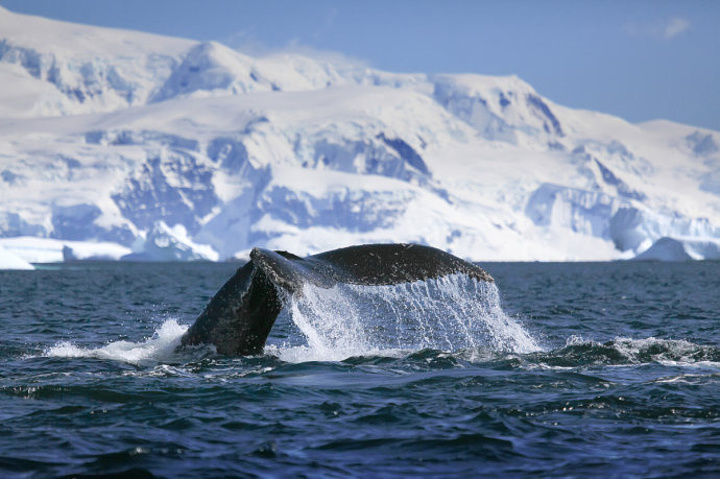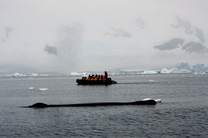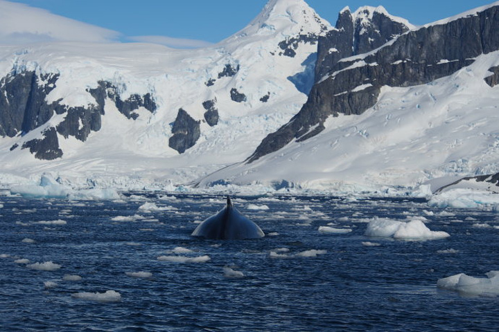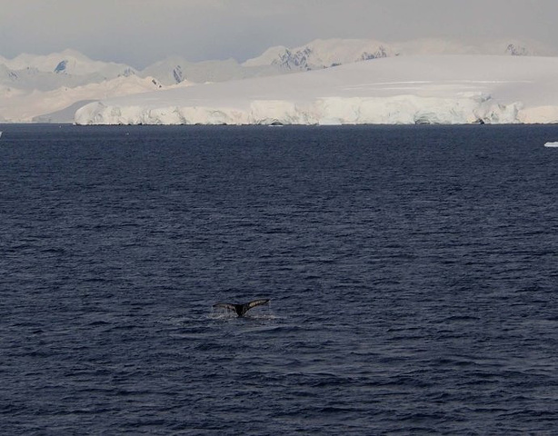 我们到达南极洲时正是鲸鱼迁徙而来的季节,观看鲸鱼是游客们乐此不疲的活动。每当游轮的广播室里播出遇到鲸鱼的消息时,大家蜂拥到前后甲板上,观看、拍摄。蓝鲸是鲸鱼中体型最大的,7-8只蓝鲸围着我们的游轮遨游,不断的喷出水柱并伴随着汽笛般的声音。