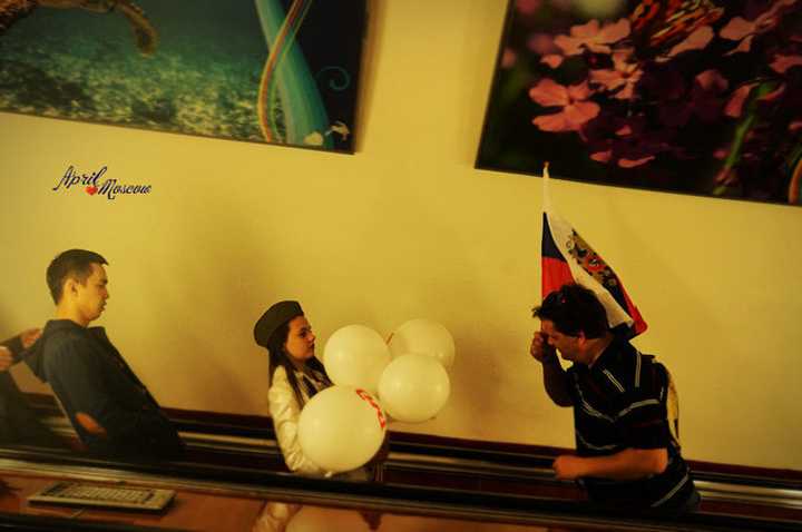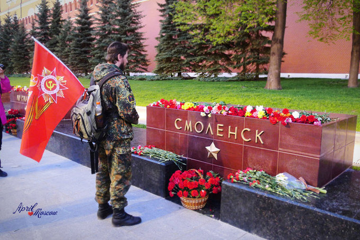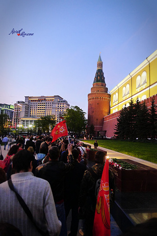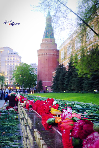 在克里姆林宫前,狂欢达到了顶峰,排着长队的人们向无名烈士墓献花。