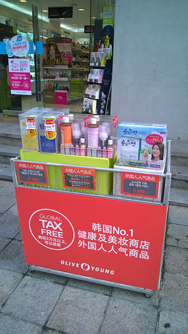 从那个小公园出来,就路过了一个化妆品店~上面写着韩国NO.1健康及美妆商店,NO.1?抬头一看,原来是Olive Young!哈哈怪不得第一名!这个店像便利店一样遍布在韩国街头,真的称的上NO.1呢!