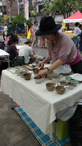 早上一起床,洗漱之后,住在旁边房间的小姑娘说她正要去看弘大的free market,是各种年轻设计师手工制作的呢!我和闺蜜一听来了精神!那就一起去!