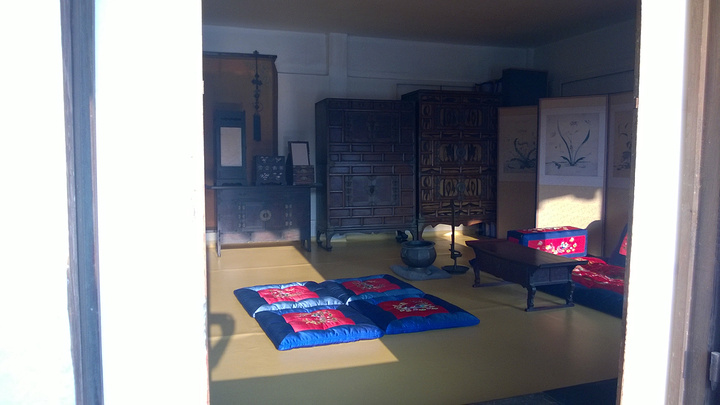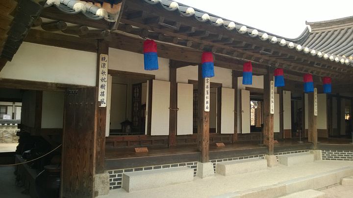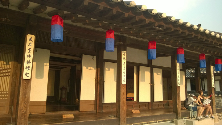 里面是一个小小的韩屋院落~干净整洁~上面挂着韩国的小灯笼,红蓝相间,一看就知道是韩国国旗上的颜色,真的是韩国民族风!古朴中蕴含着现代的感觉,而且屋内也是可以参观到的哦~虽然不能进入,但是透过窗子,看到里面传统的家具,仿佛看到了过去人们的生活起居~