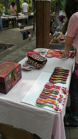 到了果然热闹非凡!而且这个free market似乎周末才有啊!我俩误打误撞赶上啦!各种手工小镜子,小扇子,帽子钱包什么的~都是很精致啊!不仅精致,而且里面还蕴含着设计师和制造者的一份情谊呢!这可比在商场中能买到的东西珍贵呢!