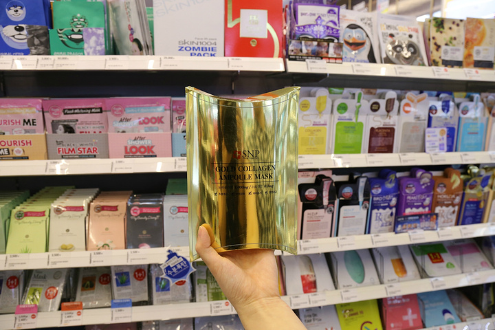 金色的盒子是黄金面膜哦~里面含有胶原蛋白和真正的24k金呢!有着改善皱纹,镇静皮肤的作用!但是价格嘛也是可观的啦~所以我俩一人买了两盒啦~