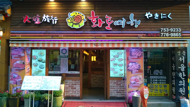 逛了一阵子,肚子饿得咕咕叫呢~来韩国第一顿饭,当然选择韩国最有名的韩式烤肉啦~我们在这家叫做“火炉旅行”的店里,吃到了超级好吃的韩式烤肉!真的是超级过瘾!