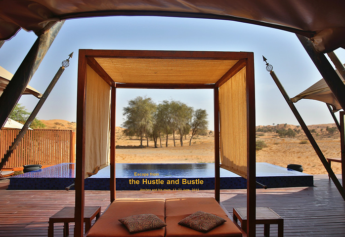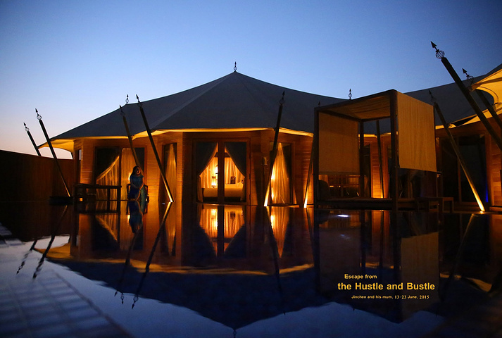 悦榕庄的沙丘上还有摆着一些餐桌,供客人晚上使用,不过,我感觉在大沙漠的外面用餐,一定会吹到盘子里很多沙子吧?!歪果仁为了浪漫也是蛮拼的!