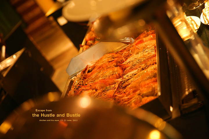 其中最好吃的区域,我认为就是入口右手边的烧烤区了!这里有烤大虾、牛排什么的!这个取餐区是最受欢迎的,开始用餐的前1个小时,这里基本都得排队的!