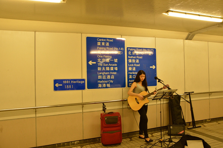 天际100下来也快8点了,肚子饿了,直奔尖沙咀了,来源记点了份油鸡饭+港式鸳鸯冻奶茶,然后再去维港看看夜景,再逛逛海港城了,真是百看不腻的美景。繁华的海港城,也让人逛的意犹未竟,地铁站里还有唱歌卖艺的摊位。虽然一个人时不时有些觉得落魄寂寞,不过也有些时候激励一下自己的独立性了,茫茫人海中有一个人就是我。。。不早了,地铁回去了。