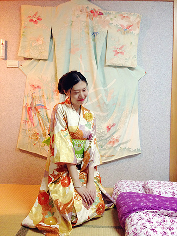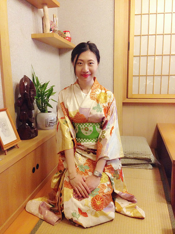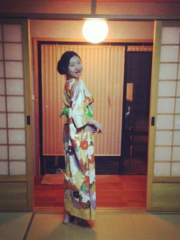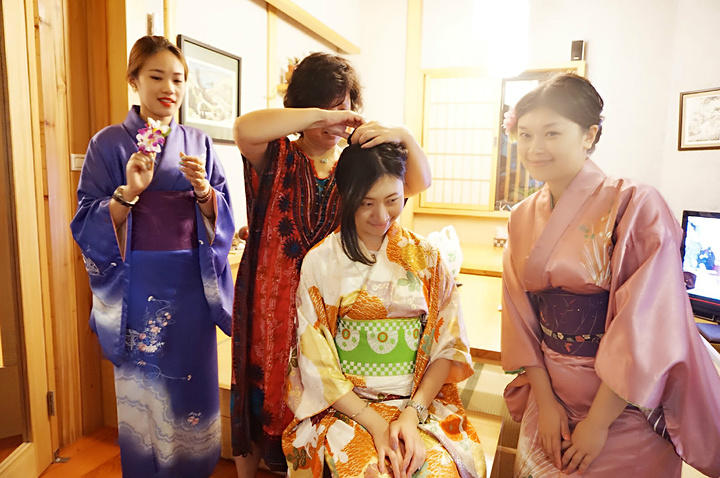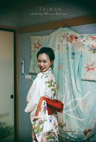 逛完回来,九份小町的老板娘帮我们穿和服,人生第一次!九份小町的特别服务哦!只需要付100台币的清洁费。选择很多,可以让老板娘帮你挑选适合自己的式样。