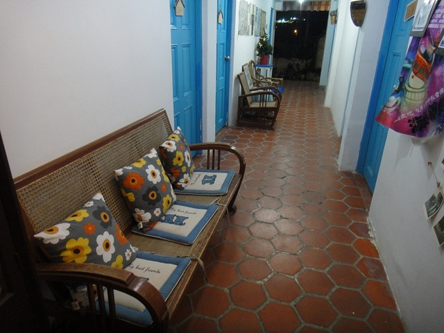 海巢是蓝白色的地中海风格,一个小院子,一幢2层小楼和几间平房,有木有很浪漫啊?!