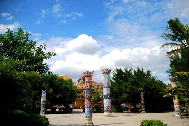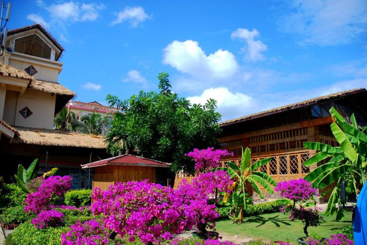 沿着槟榔河走居然发现了这个个“黎族传统文化博览区”,这里能算景点的地方几乎没有,要是勉强算一个的话就是博览区了。 这里居然还有人查票,给他看了看手机的电子码就算验过票了,也没有记录什么的,因为除了我俩就没有看到其他游客。