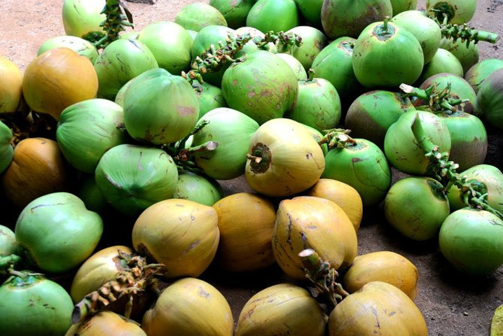 这里农家有很多椰子,都是准备送到市里卖的。这里卖5元一个,比市区便宜。 椰子千万不要只挑个子大的,有的个头看着很大,但是皮特别厚,里面的水反而很少,有的个子小,但是皮特别薄,水反而多,买的时候一定要问好。
