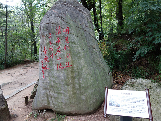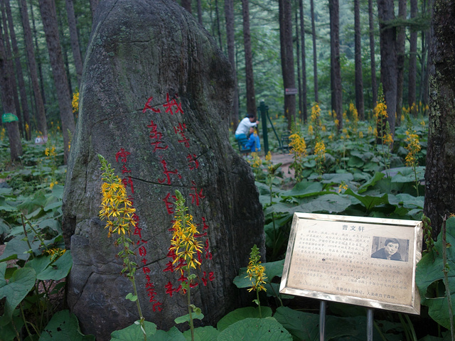 洛阳嵩县白云山上有一处森林天然氧吧,让我们一行人享受到了难得一次身心放松。随着环境污染的加剧和人们对空气质量的高度重视,天下叫氧吧的多了去了,也确实火起来的了。但嵩县白云山上这一处氧吧可却不同于其他任何地方一处氧吧。首先,氧吧内的旱莲就让游人着迷。其次是嵩县专门的森林氧吧内专门打造的世界名人题咏及作家名人文化长廊。白云山石刻群,总投资66万元,安装特色巨石80块,镌刻60余名国内外顶尖级文学家、艺术家对白云山的题词、题字,语种涉及英、法、德、意、俄、西班牙、阿拉伯、韩、日、希腊等11种,是目前国内涉及语种最多、规模最大、档次最高的石刻群。石刻群别具匠心地散落于森林氧吧和景区广场之间,游人可在游山玩水的同时,品味、欣赏国内外名人对白云山的题咏,那各具特色的书法,令人感悟的诗句,巧夺天工的奇石,让人感到自然与文化在此得到了完美结合。名人作家艺术家中有莫言、穆青、李佩甫、李国文、节陀、余华、闫连科、张洁、张抗议抗、周大新、胡蓝蓝、张炜等等……