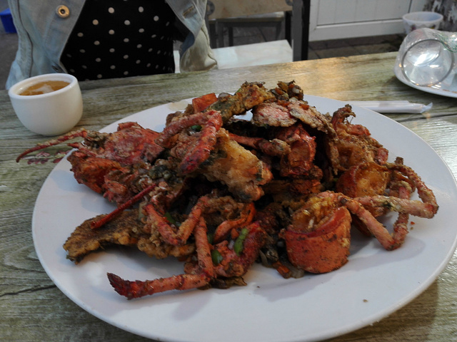 龙虾君~肚里有好多鱼子,红色的,老板都给炸了,很好吃