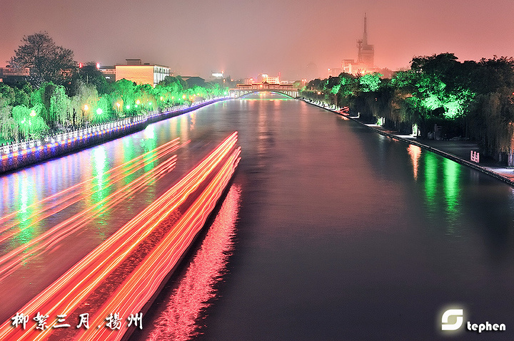 大运河白天看时就是一条河(其实说大水沟也不奇怪),晚上就完全不一样了。