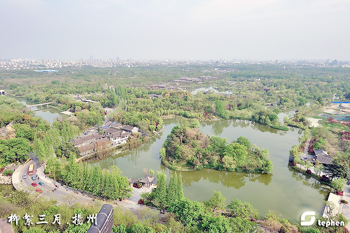 爬上来后,视野非常辽阔,往南望去,整个扬州像一个大公园。