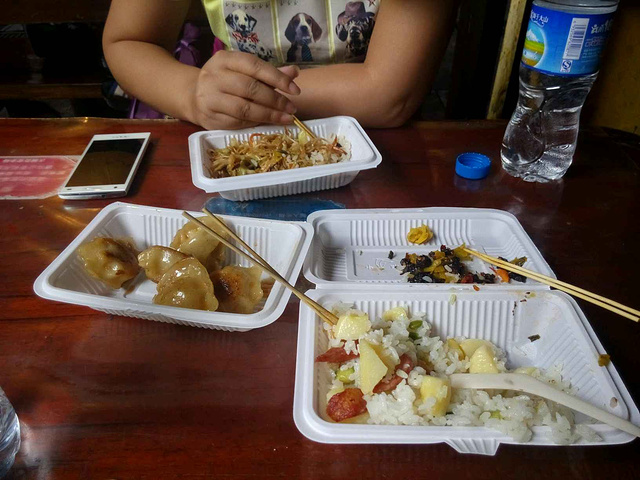 9.13午饭,丽江136rmb丽江古城饭店回锅肉,宫爆鸡丁,野生菌汤。特别难吃,回锅肉的肉像水煮的白白的,看了没有一点食欲,宫爆鸡丁勉强能吃,野菌汤好像没加盐,嘴巴淡出个鸟来。
