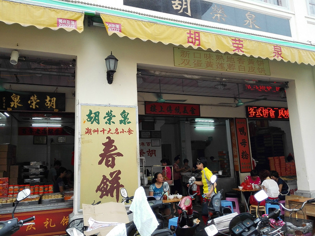 第二天,直接坐1路车到韩师的东南门,从东南门下车进去逛下韩师,我没拍照,因为没有感觉,然后开个导航,直接走到韩师的西北门,再往左走,就是广济桥和韩文公祠了,先去的韩文公祠,韩文公公祠门票是20元,广济桥是50元,最好买套票,80元,可以去好几个景点,但是电瓶车服务基本是不提供的。然后我们又折回了牌坊街,从南桥市场进去,看看白天的牌坊街也找找小吃。甲第巷就是牌坊街里的一条小巷子,我觉得吸引力不大,瞄了几眼就走了。然后我们就直奔胡荣泉,完成家里人交待给我们的政治任务----买饼。牌坊街有三家胡荣泉,但是最正宗的也能在官网查得到的就是靠近状元牌坊的第二家,太平路136-144号,不要走错,我们买了七盒饼,饼一盒33,有12块,三个味道,绿豆沙、红豆沙和香芋还有一盒咸豆方和花生酥、腐乳饼这是作为手信,咸豆方很特别,可以试试。另外还买素饺和春卷单吃。春卷真的很好吃,都忘了拍图,直接就吃了,一个两元。回酒店的时候看到了有一个上了年纪的老伯在卖糕粿,之前又没吃过,就买了一份,十元钱,挺多的,最重要的是好吃,就在开元路口麦当劳对面的一个小摊,只有晚上才有。南桥市场对面有一家新台湾冰城,它的绵绵冰很好吃,也不贵,可以一试。吃饱喝足,我们就准备上路了,南桥市场站往回走8分钟左右,有一个高铁专线售票点兼卖彩票的,我们就是在这里买票和上车的,亲们可以提前在这里看好时间,然后再决定买几点的票,从这里去高铁站大概一个小时。