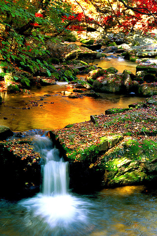 秋天果然是天桥沟最灿烂的季节。五彩斑斓的红叶、彩林倒映在明丽的湖水中,彩色的秋叶与绿色的湖水交相辉映,美如童话世界;碧绿的湖水无处不在演绎着赤、橙、黄、绿、青、蓝、紫的梦幻组合,令人几乎不敢相信眼前的现实。话不多说,直接上图!
