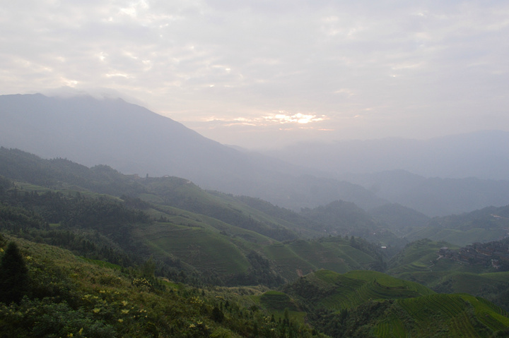 本打算住兴坪第二天游漓江,下午兴坪坐车桂林转龙脊,可是早晨起来下大雨,所以漓江行取消没在兴坪停留,直接奔龙脊去了。兴坪-桂林,2小时30分钟以上。前一天晚上订了全景楼的住宿,酒店有车到龙脊,订好了车,50/人。