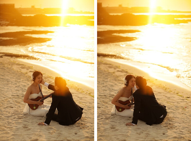 挑选好婚纱礼服后就开始化妆和设计造型了,我们那天要不是有翻译金小姐的全程陪同翻译,那就真是”要命“了,因为他们化妆师造型师还有摄影师团队都是清一色韩国人,一句中文不会。室内简单拍摄后老公就催着出去拍外景,不过说真的我们去济州岛拍婚纱摄影就是冲着济州岛外景去的,要是拍韩式内景的话其实北京也有的,只不过老公是个急性子人,他就是不说人家也是只在室内简单拍摄一些的。海边黑岩滩、港口码头灯塔、莲洞街道、济州马场、还有涉地岬的惊涛拍打岸上的岩石场景都是我们去之前就攻略好的。中午吃饭也是他们影楼给安排的,(我们订了一个7800元的套餐,就包括了一辆专车,婚纱礼服、翻译,原片,精修、后期相册产品等,反正这一天没有任何费用了,就连吃饭都是包括里面的了。)一天的拍摄下来我们到是还好,真的是辛苦了朴相洙摄影师跟助理还有翻译金小姐了,看他们对待工作的态度和热情,我们表示真心的佩服,见识了韩国人的那份敬业和专心。