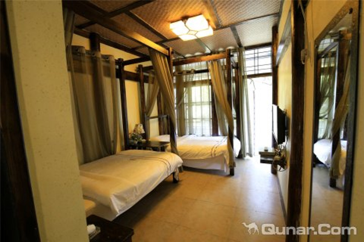 由于客栈是处于沱江下游,在“雾桥”附近。环境是比较安静的,河对面就是山林树木。客栈虽说是处于下游,但是步行到虹桥也不过10来分钟,古镇也不大,住这里性价比比较高。床是那种木头四柱床,很有特色,而且很多房间的阳台都有木制的大秋千!卫生条件也不错,床铺没有异味。这里出门就是沱江,每天早上就能看到农家小船缓缓划过,晚上可以坐在客栈小书吧里喝点小酒,听老板弹吉他,打打鼓。