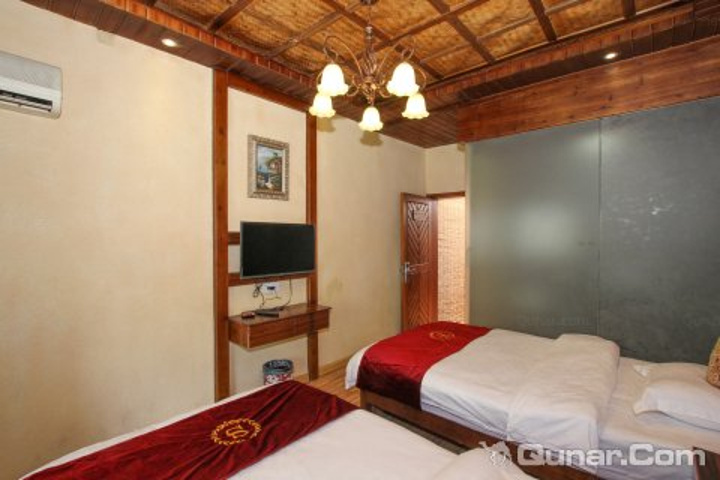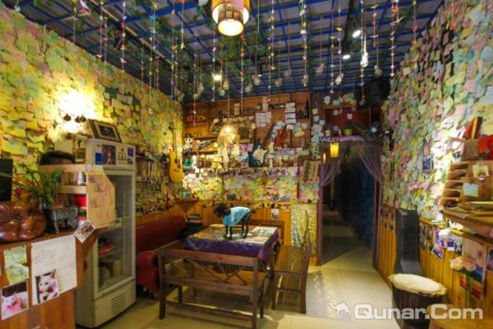 没有奶茶临江客栈客栈紧邻风桥,距离虹桥也只需走6,7分钟,过了风桥有公交车,过了虹桥打车很方便,所以客栈交通非常便利。临江房间会有些吵,但相较于酒吧一条街那边的临江客栈已经算安静的了,也能看到很美的夜景。若要入住可以注意询问一下不同客房的卫生间情况。比较好的是会有堵墙将卫生间与床隔开,看着比较舒服。这家客栈比较特别的地方是一楼就是一间奶茶店,布置的很文艺,是凤凰奶茶卖的最好的店之一,奶茶是那种奶味比较重的,很好喝。还可以在这里邮寄明信片。