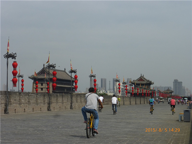 早晨 到陕西历史博物馆大门看了几眼,人太多,所以去城墙南门,上城墙,一直走回到德胜门,下到火车站—z92—9·6早上海陕博陕博西安,也是一座繁华的都市登城咯。。。西安,再见!来自游记梦回长安+夜爬华山+壶口瀑布