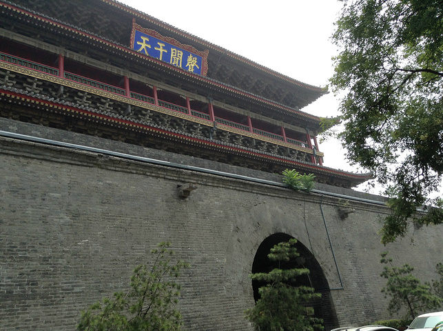 从回民街出来之后,一直往南走,就可以看到鼓楼,很显眼,好找。鼓楼与钟楼遥相呼应。环绕着鼓楼走一圈,可以看到很多以节气命名的鼓,颜色是很新的红衬着旧旧的青砖稍稍有些不符。展演大厅门口有面很大的鼓,是很值得参观的。