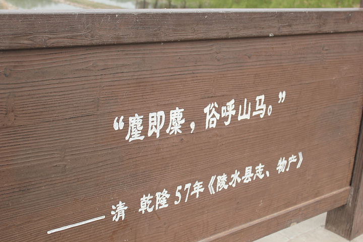 进了门有个桥,桥上面都是这种古代的诗句,当然全部是介绍麋鹿的,看来这麋鹿真是大有来头!麋鹿(学名:Elaphurus davidianus)又名“四不象”,是世界珍稀动物,属于鹿科。因为它头脸像马、角像鹿、颈像骆驼、尾像驴,因此得名四不像,原产于中国长江中下游沼泽地带,以青草和水草为食物。性好合群,善游泳,喜欢以嫩草和水生植物为食。麋鹿是一种大型食草动物,体长170-217厘米,尾长60-75厘米。 雄性肩高122-137厘米,雌性70-75米厘米,体形比雄性略小。麋鹿是鹿类动物中较温顺的一种。据人工多年的饲养、观察,麋鹿的奔跑速度不及梅花鹿和狍,发情期的公鹿也不像梅花鹿、马鹿、白唇鹿那样攻击人,而且占群公鹿见到人接近即逃跑。