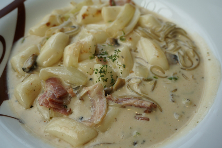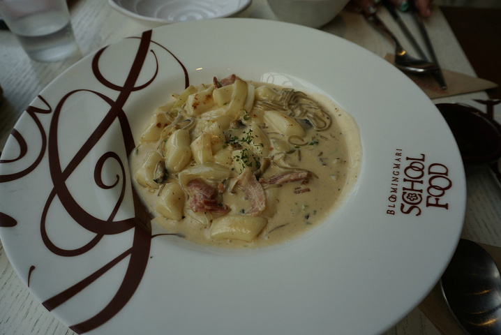 在东大门逛的差不多之后,我们又前往光化门啦~原来是想在这儿吃点午饭,但是因为光华门附近有闺蜜想吃的店,那就在那儿吃啦!我们吃的是光化门附近的“school food”,像不像吃学校食堂的感觉?这个店在韩国各种电视剧中屡屡出现,是卖炒年糕和紫菜包饭的地方,但是也有奶油培根意面这种特别的视频啦!因为是连锁店,所以好多地方都有,所以有机会一定去一下!我们点的是蛋卷饭,还有奶油培根炒年糕!因为总看到红红的炒年糕,看到白色的真的很神奇!而且也不辣,正好适合不能吃辣的我呢~那就委屈下我无辣不欢的闺蜜啦!