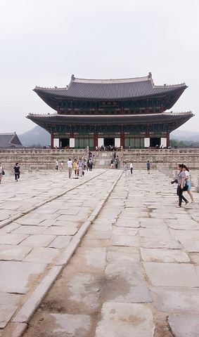 一顿饱餐之后,我们就去了光化门!进了光化门就是韩国的皇家宫殿,景福宫啦!天色有点阴,但是丝毫无法影响我们的热情!这里虽然不像北京故宫那样雄浑壮丽,但是自成一派,透出了几分素雅和宁静。游人不多,景福宫要买票入场,但是十分便宜,韩元2500一个人~