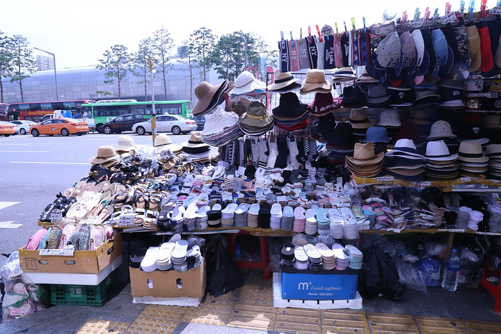 到达东大门啦~因为我们是上午去的,实际上韩国人一般都是下午或者晚上才出来逛的,所以路上就没有多少人~~不过路边还是有三三两两的小摊可以逛一逛,还看到个小小舞台,各种舞台灯真是多,如果晚上这里应该会有演出吧!